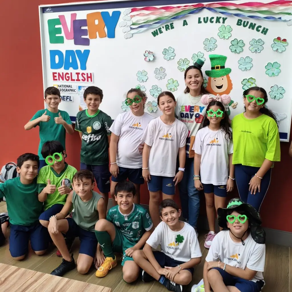 No dia 17 de março, os alunos do programa Every Day English do Colégio Progressão participaram de uma programação especial em comemoração ao Saint Patrick’s Day.
